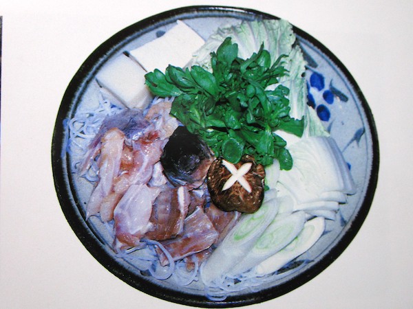 こふく揚げの次はふくちり鍋。昆布でだしをとった湯の中に、フクのあらとハクサイ、シュンギク、シイタケ、ミズタケ、豆腐を入れる。それにフクの白子(精巣)を入れることもあるという。