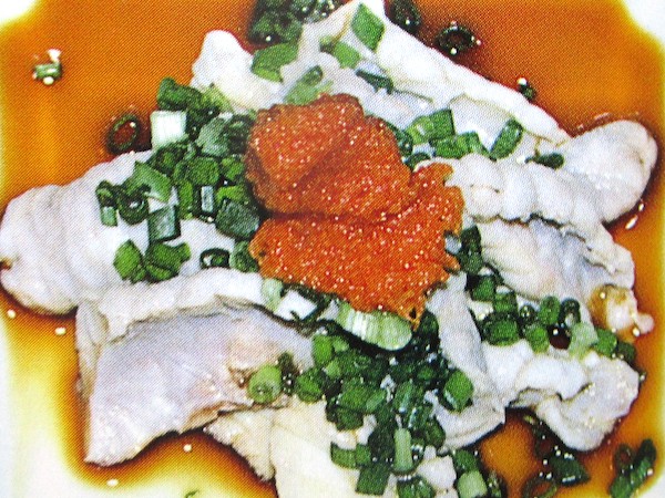 箸をつけるのがもったいないような気もしたが、ひときれつまんで、つけ汁(醤油にダイダイ酢をまぜ、薬味を入れたもの)につけ、口の中に入れた。フクの切り身は淡白な味だが、かみしめるとかすかな甘みがあり、粘り気も出てくる。シコシコした歯ざわりが何ともいえない。