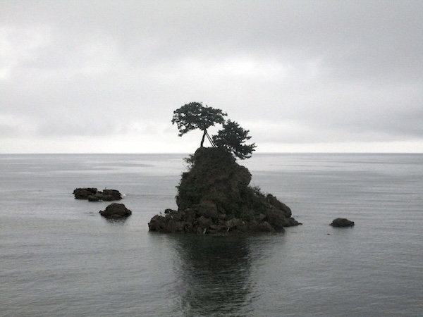 国道415号で熊無峠を越えて富山県に入ると、氷見からは雨晴海岸を行く。絶景の雨晴海岸だが、ぶ厚い雨雲が垂れ込め、対岸の立山連峰は見えなかった。