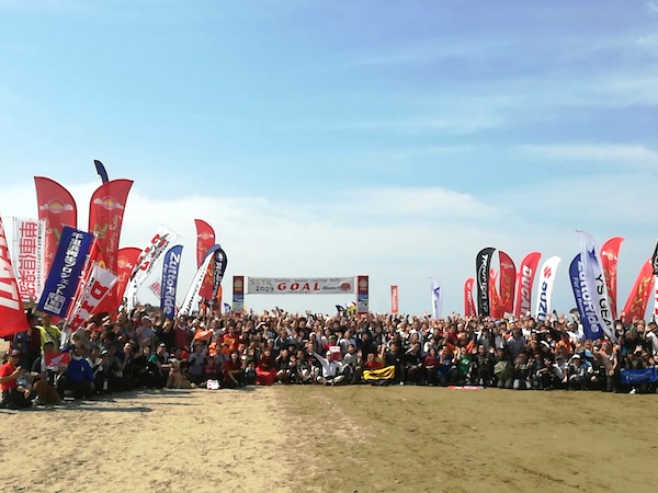 国道249号を一気に南下。能登一宮の気多大社を参拝し、9時、千里浜にゴール。風間深志さんに出迎えられ、SSTRのTシャツをプレゼントされた。ここでは三好礼子さん、風間晋之介さんにも出迎えられた。