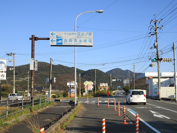 10月27日7時。下関の「東横イン」の朝食を食べて出発。日本海沿いの国道191号を行く。蓋井島への下関市営渡船の出る吉見を過ぎ、吉母入口の交差点を左折し、吉母漁港から本州最西端の毘沙ノ鼻へ。岬突端の展望台から蓋井島を見た。