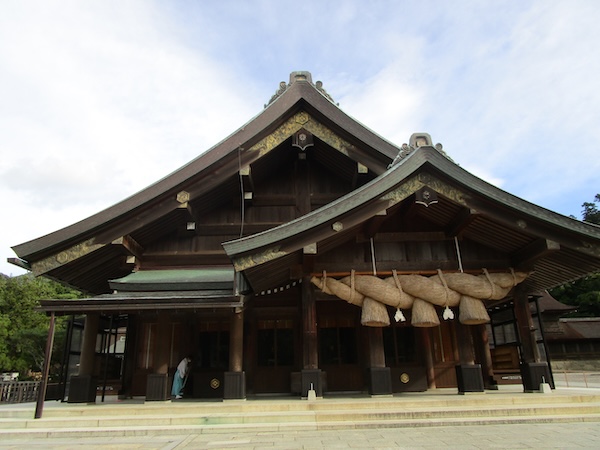 国道9号で出雲市に入る。出雲一宮の出雲大社を参拝し、日御碕へ。日本一の高さを誇る日御碕灯台を見た。