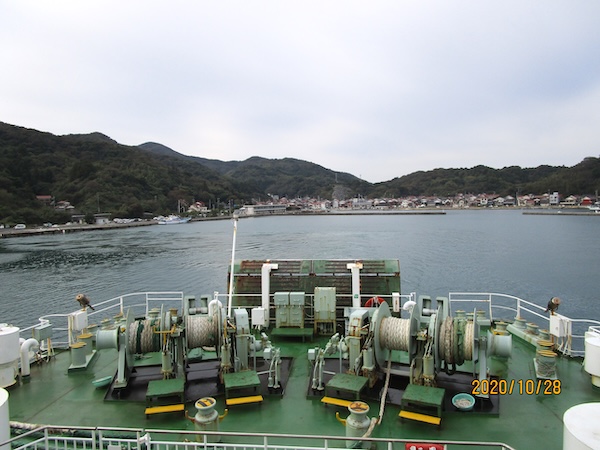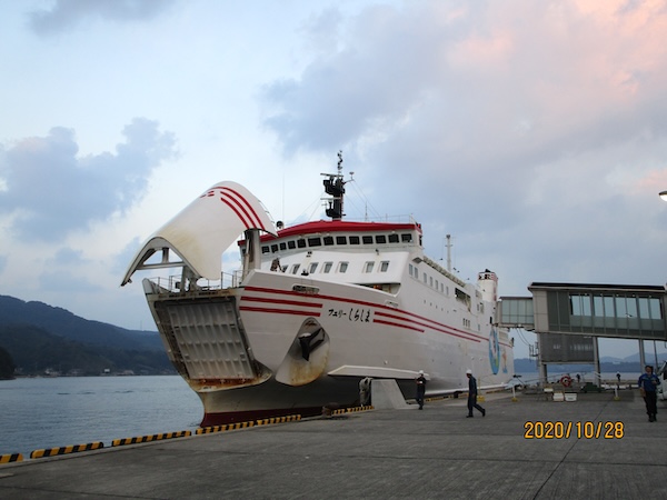 来居港に戻ると、15時57分発の隠岐観光のフェリー「どうぜん」で西ノ島の別府港に渡り、別府港発17時15分発の隠岐汽船のフェリー「しらしま」で島後の西郷港に渡った。西郷港到着は18時30分。
