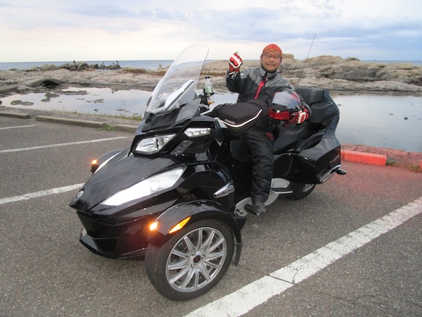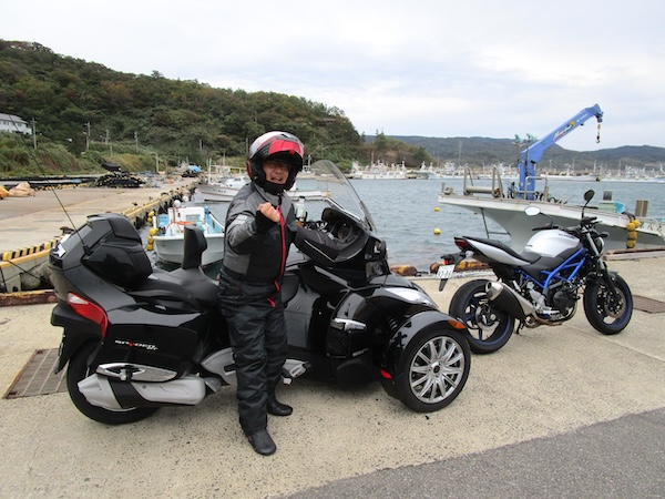 風間さんとのトークショーを終えると午後の部、開始。風間さん&カソリのトークショーを聞きに来てくれた芦田一之さんが同行したいという。どうぞどうぞ。芦田さんはトライクのBRP Cam−am スパイダーRTーSでカソリのSV650をフォローする。