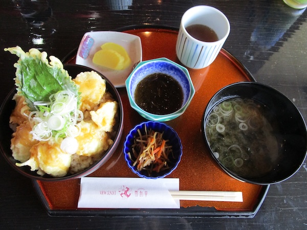 我々はまずは鹿磯漁港に行った。つづいて「じんのびの湯」に入り、レストランで昼食。ぼくは「能登ふぐ天丼」を食べた。