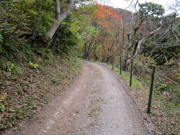 「じんのびの湯」からは新道のおさよトンネルを抜け、能登半島北西端の能登の秘境、猿山岬まで行った。そしてすばらしい紅葉を見た。国道249号に戻ると、県道38号に入り、男滝と女滝の2つの滝から成る男女滝を見た。外浦海岸に出ると大沢へ。小さな入江に面した集落は冬の季節風から家を守る間垣に囲まれている。