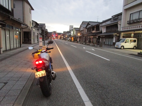 県道38号で輪島に到着したのは16時30分。鴨ヶ浦から輪島の中心街に入り、道の駅「輪島」で芦田一之さんと別れた。芦田さんはトライクで福井へと帰っていく。カソリはルートインへ。