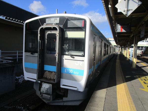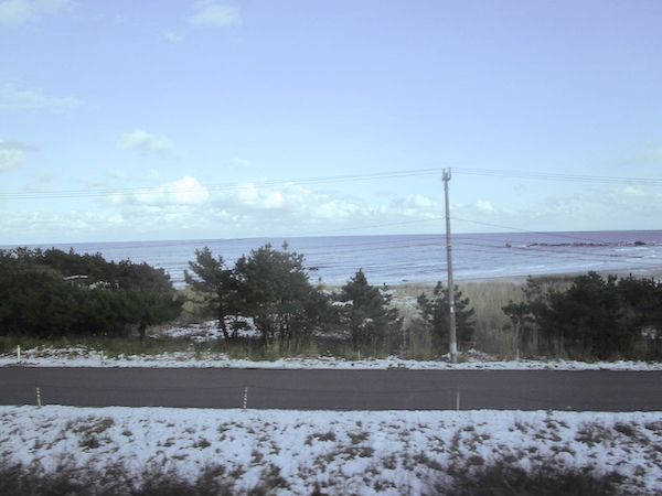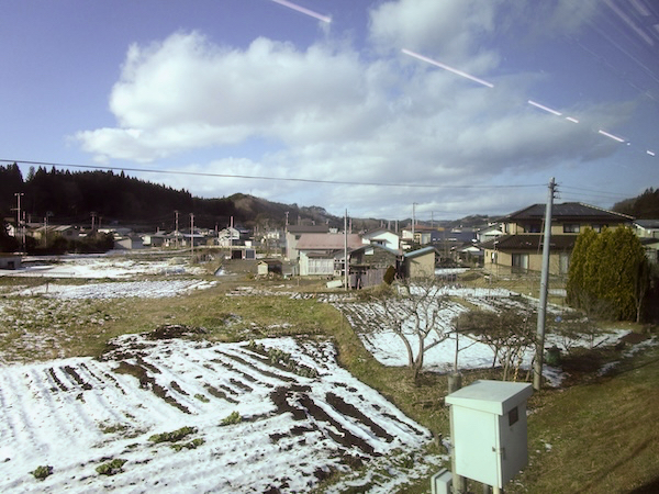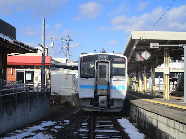ゆったりした気分で流れゆく車窓の風景を眺める。「今、旅している!」という実感が味わえる。これが鈍行列車の大きな魅力。ところどころで雪景色になったが、岩手県内の雪はそれほどでもない。