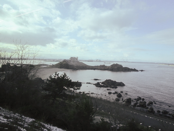 種差海岸駅を過ぎ、葦毛崎を過ぎると、蕪島が見えてくる。