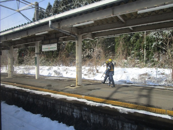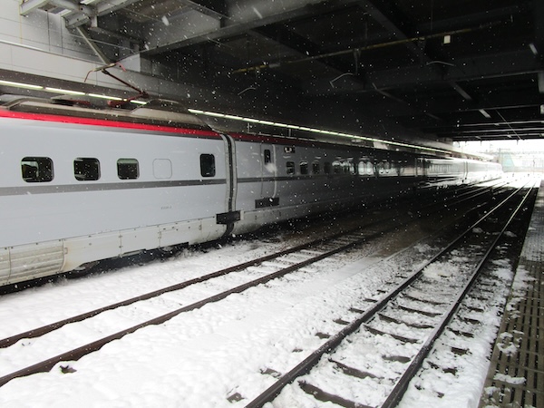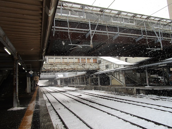 雪が激しくなった。逃げこむように「むげん茶房」に入り、「餅入りしるこ」(610円)を食べ、秋田駅に戻ってきた。