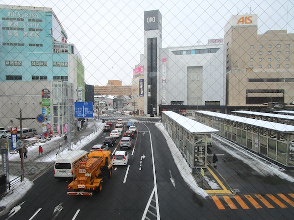 「秋田比内地鶏や」で「秋田比内地鶏の親子丼」(1580円)を食べると、秋田駅の周辺を歩く。雪が降っている。