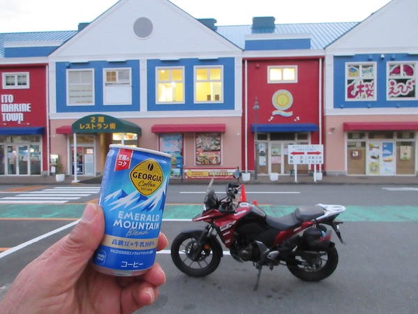 まだ暗い熱海を出発。「熱海→沼津」の「伊豆半島一周」だ。まずは国道135号で伊東へ。伊東で夜明けを迎える。道の駅「伊東マリンタウン」で缶コーヒータイム。缶を握って手をあたためてから飲み、ホッと一息ついた。伊豆半島といってもこの季節は寒い。