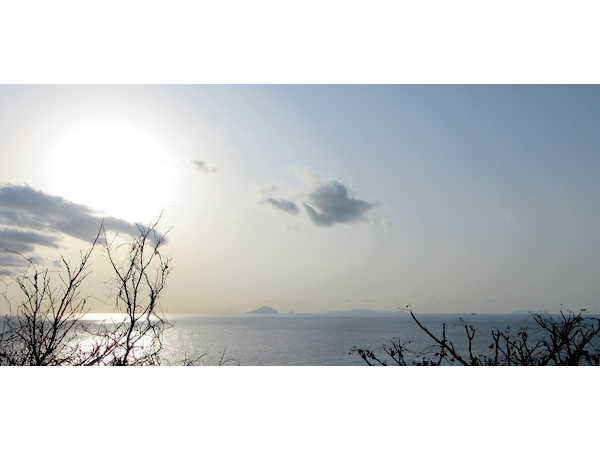 岬上には四角形の灯台。灯台に隣り合った展望台から伊豆七島を見る。すると新島北端の後には、かすかに三宅島が見えている。三宅島、御蔵島が見えるのは年に数回。八丈島が見えることはない。