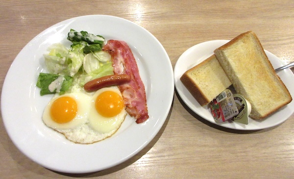 御殿場到着は6時。寒い。気温は氷点下5度。国道246号から国道138号に入ってすぐのところにある「デニーズ」で朝食。目玉焼きとトーストイのモーニングセットを食べた。