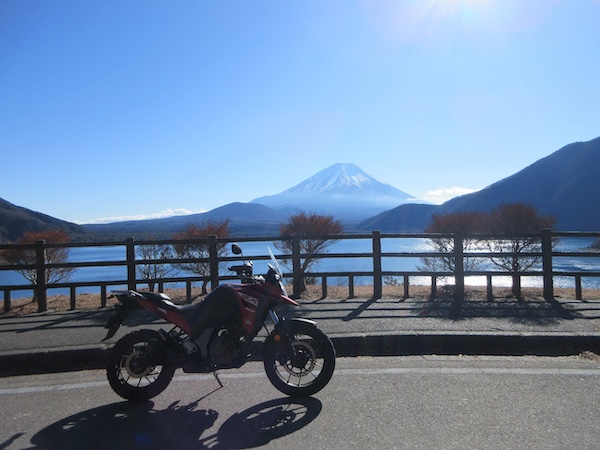 船津から国道137号で河口湖の北側を行き、つづいて県道21号を走る。「湖北ビューライン」と名付けられた県道21号は絶景ルート。河口湖越しの富士山を見る。大石公園からもきれいな富士山を見る。