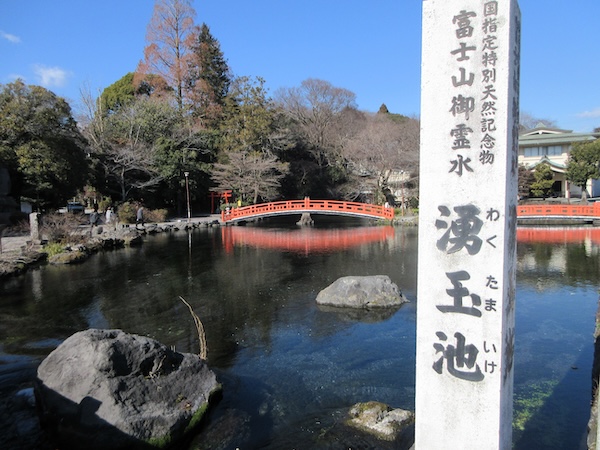 白糸の滝から富士宮の中心街に入り冨士山本宮の浅間大社へ。ここは駿河一宮。浅間大社の境内には富士山の湧水が湧き出る「湧玉池」がある。膨大な水量の湧水で、富士山の雪解け水がおおよそ15年かかって地表に湧き出てくる。湧玉池は一級河川の神田川となって勢いよく流れ出ていく。驚きの光景。そこには神田川起点の表示板が立っている。