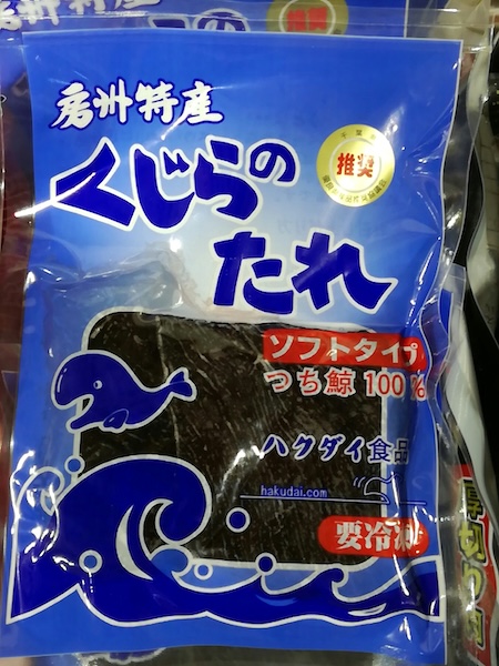 「くじらのたれ」とは江戸時代からこの地方に伝わる伝統的な食べ物。鯨肉を醤油や塩ベースのタレに漬け込み、天日で干したものだ。これがうまい。酒のつまみにも最適で、食べ始めるとやめられなくなってしまう。